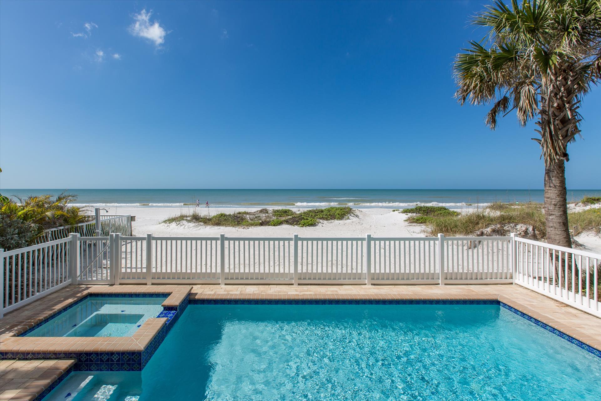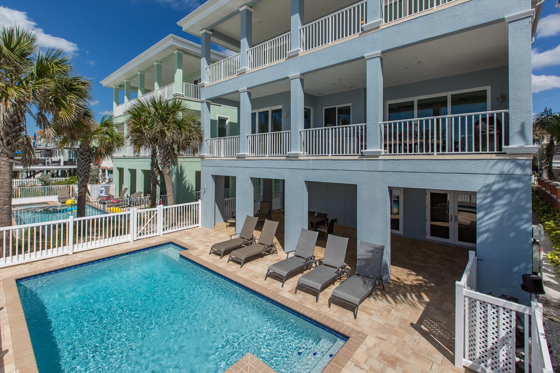 The rear of the property has a pool and hot tub, with sunbeds and seating for you and your party to relax in. There is also an outdoor shower for you to rinse off after a dip in the warm Gulf of Mexico which is just steps away. There are plenty of amenities and toys for your use. We have beach chairs and umbrellas, Paddle boards and Kayaks available for your use*. There is also a full crib, pack-n-play, high chair and baby gates for your convenience.
