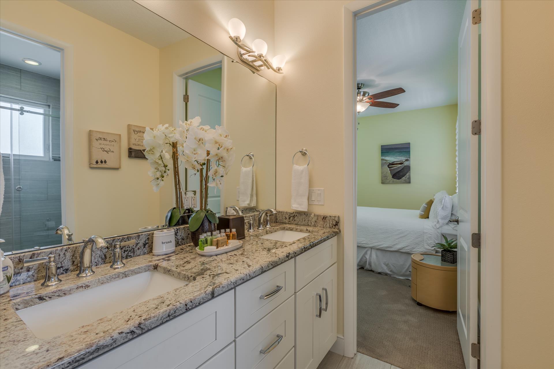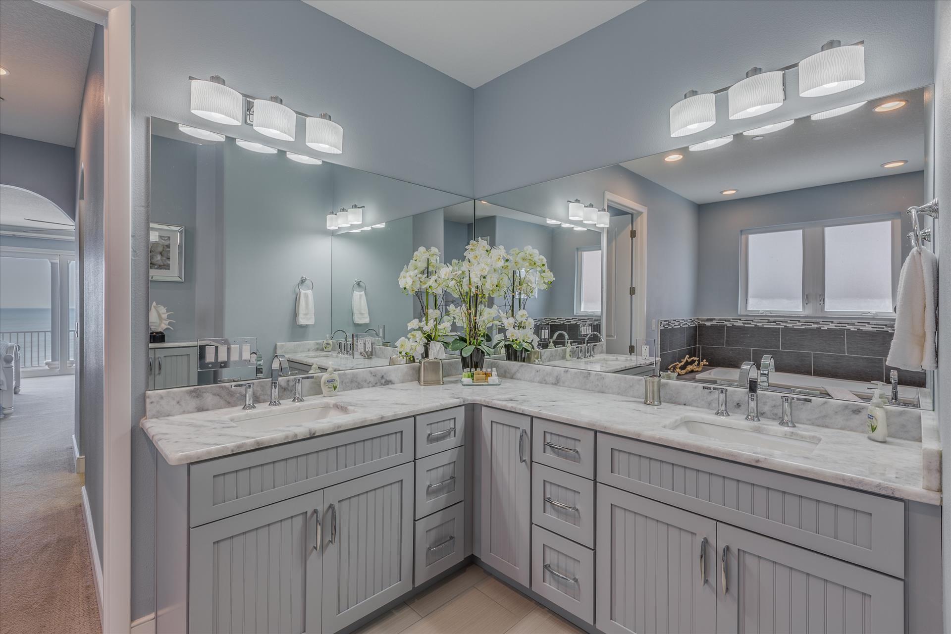 The third floor consists of 4 more bedrooms. The master bedroom has a king bed and large walk in closet. The master bathroom features a soaking tub and separate walk in shower as well as a double sink/vanity unit. Bedroom 2 - has a king bed and en suite bathroom with tub/shower combination. The other two bedrooms on this level share a Jack'n'Jill bathroom. One bedroom has a queen bed and the other has a king bed. There is also a laundry room on the 3rd floor, as well as another large balcony with incredible birds’ eye views over the beach. All of the bedrooms have flat screen TV's.