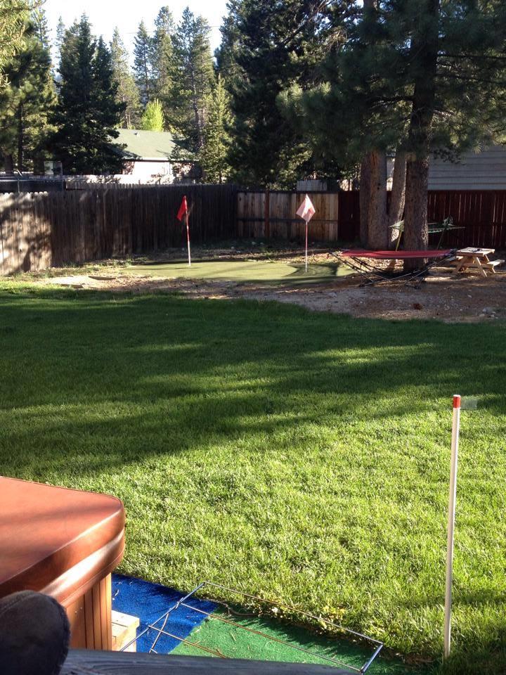 Newer Home with Luxury accommodations. This spacious home is perfect for a Tahoe Luxury Retreat or family vacation. Relax on the large second story Deck enjoying incredible panoramic views of Echo Summit and surrounding mountains. Go Hiking, Biking, Golfing, Fishing, Climbing, Skiing, and snowboarding all nearby. Beautiful top-quality furnishings and stylish decor with custom features throughout. Hot Tub and putting green in the back yard. Central location near ALL ski areas, neighborhood backs up to golf course, Truckee River, and 9-acre lake. Located in the Tahoe Paradise area of South Lake Tahoe, California (The historic site of the Pony Express). Close to everything you're looking to do in South Lake Tahoe. Parking for 6.