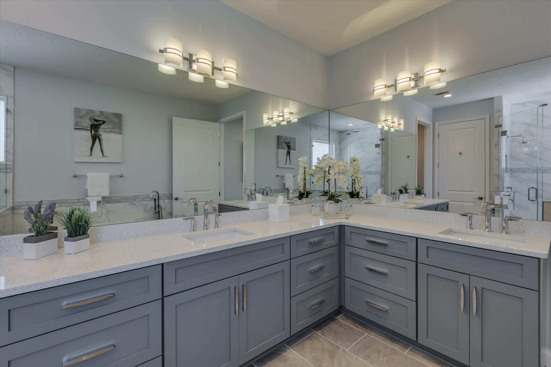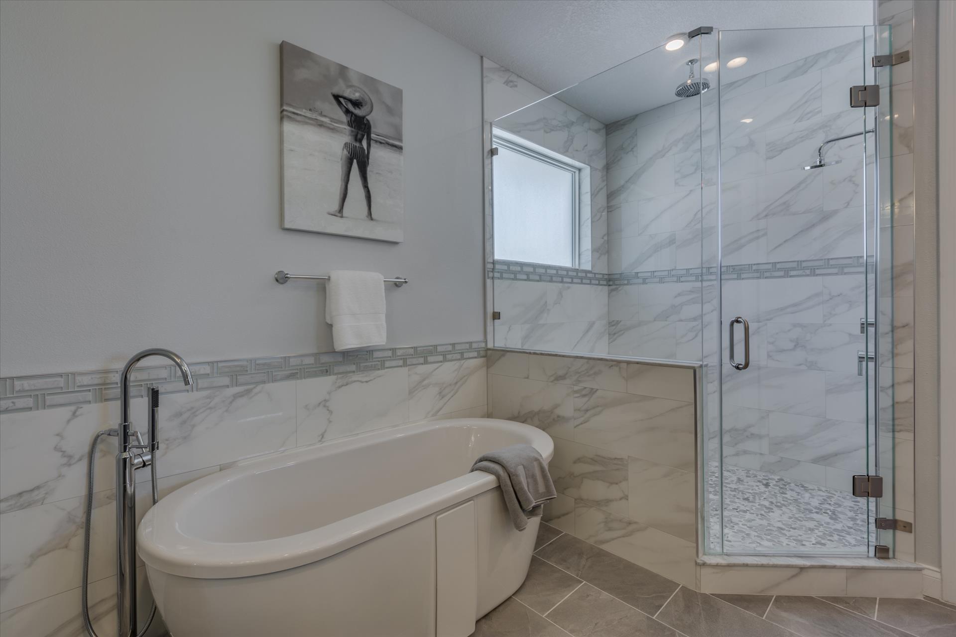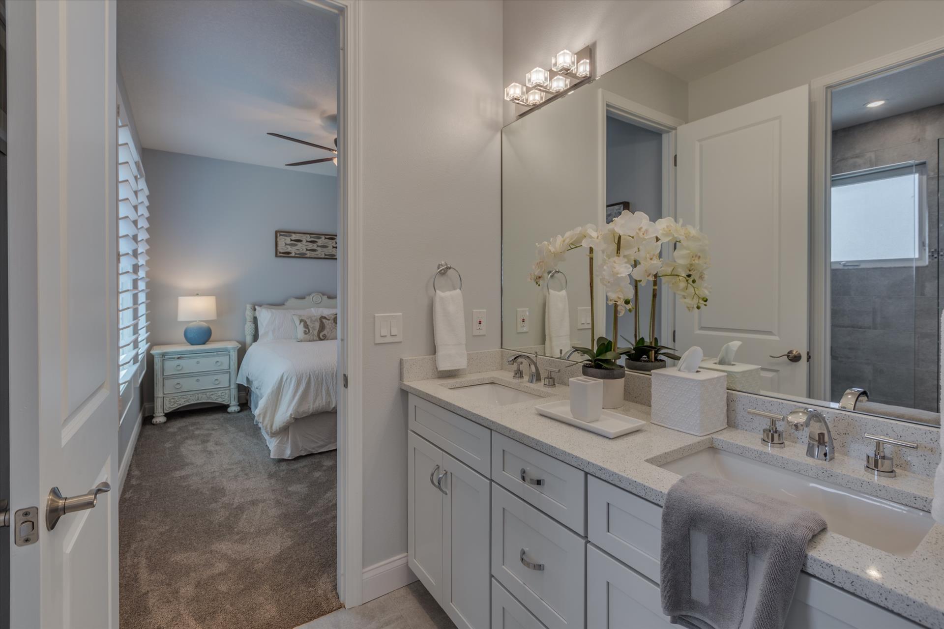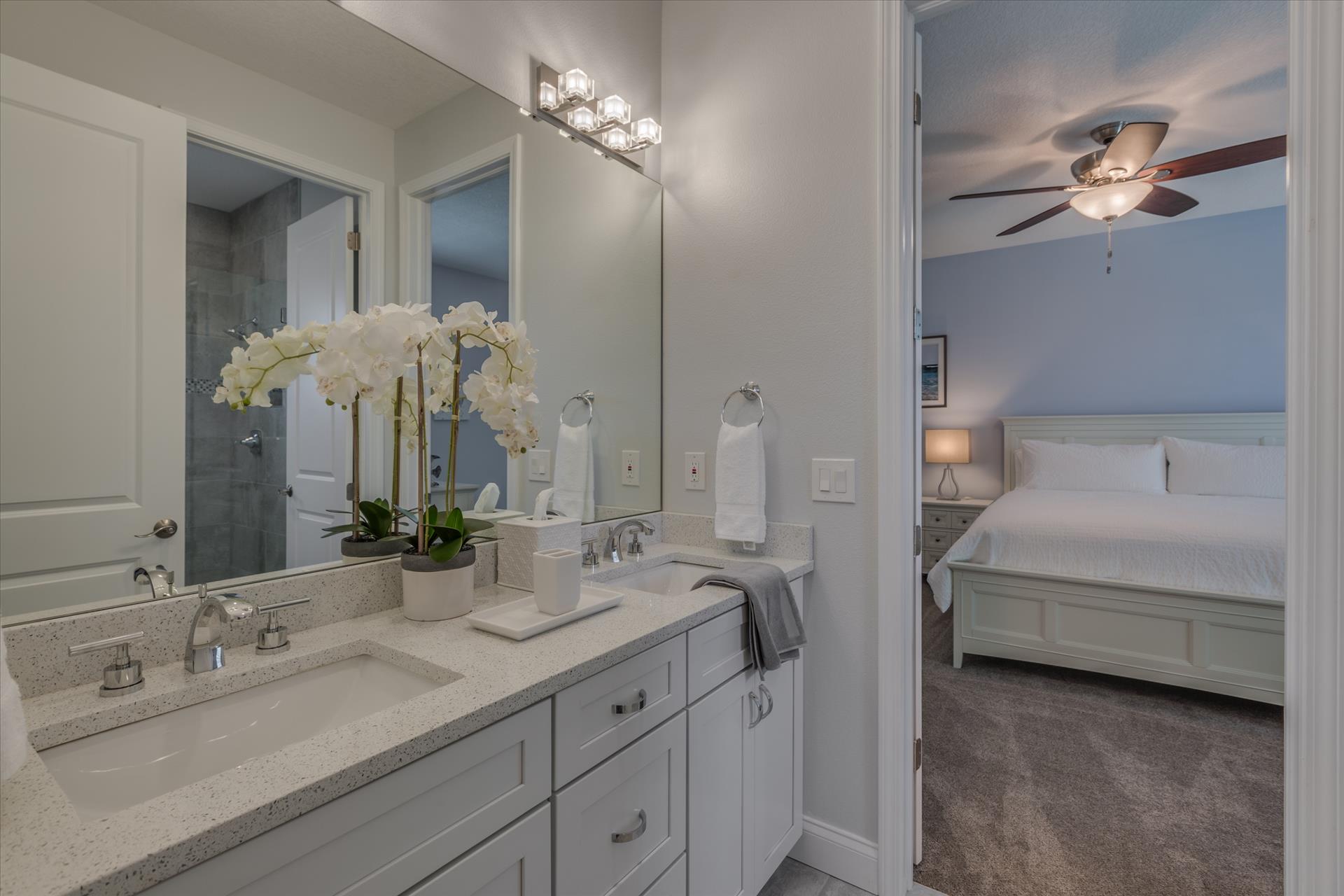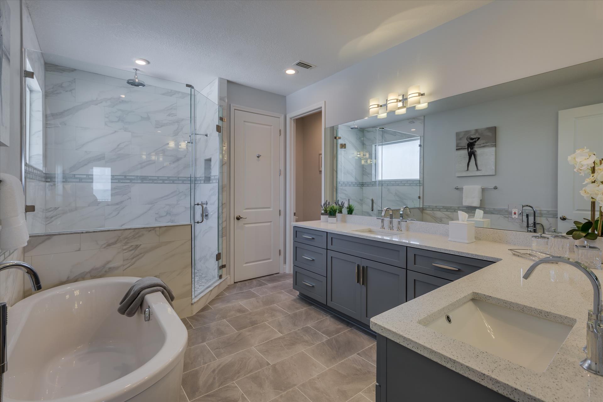 The third floor consists of the remaining 4 bedrooms. The master bedroom has a king bed and large walk in closet. The master bathroom features a soaking tub and separate walk in shower as well as a double sink/vanity unit.