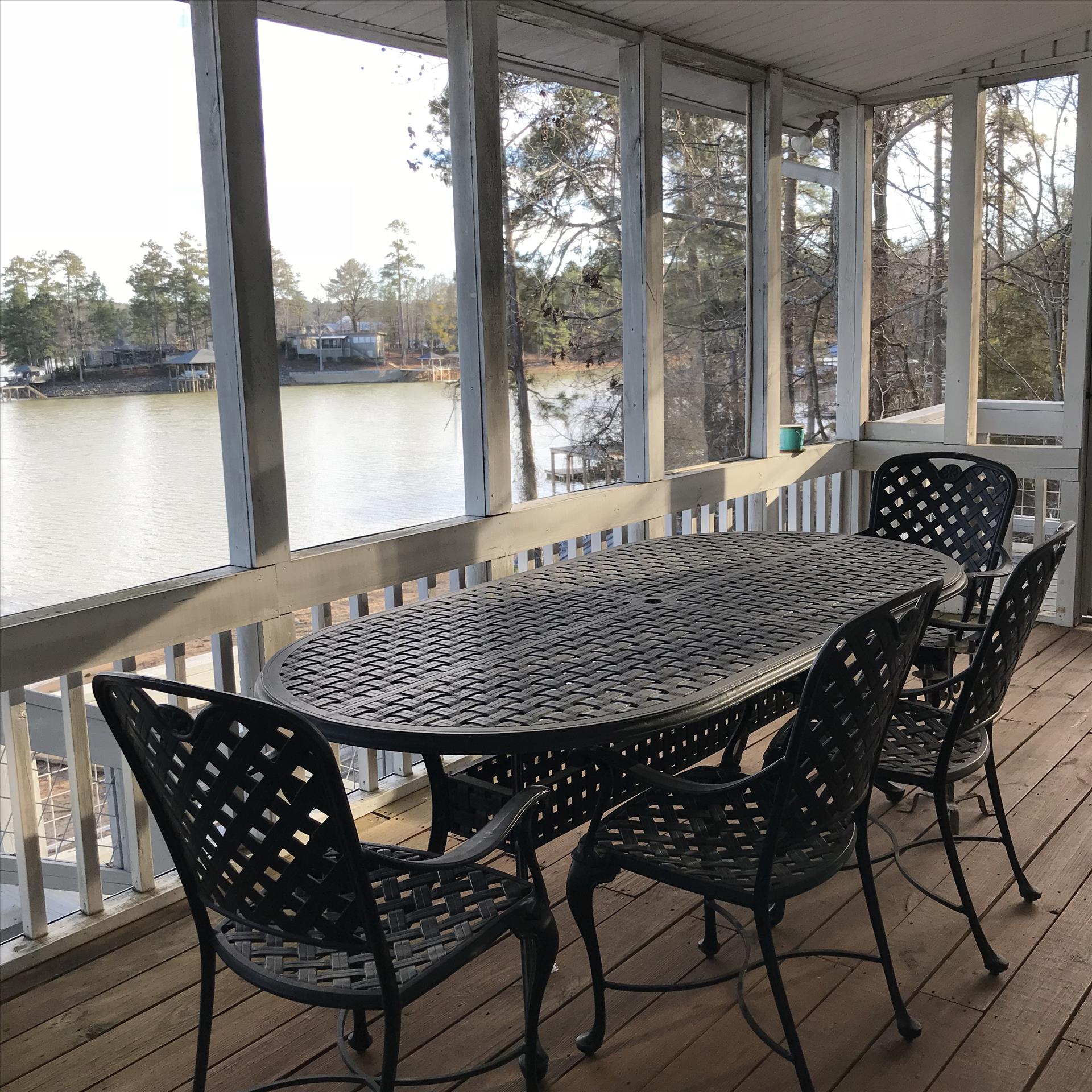 GREAT area of the lake! Close drive for Montgomery and Birmingham residents. Privately owned lake house with 3 bedrooms 2 baths on the main level. The main and second bedroom have a queen bed and the third bedroom has a full and a twin bed. There is also a lower level accessible from the outside on lakeside and it offers a convenienent second refridgerator, half bath, and sitting area. You can take in the BIG lake views from the sceened in deck or the large open patio below. This home is conveniently located across the water from Parker Creek Marina and The Landing at Parker Creek, a popular spot for summer fun with food, music, and more!