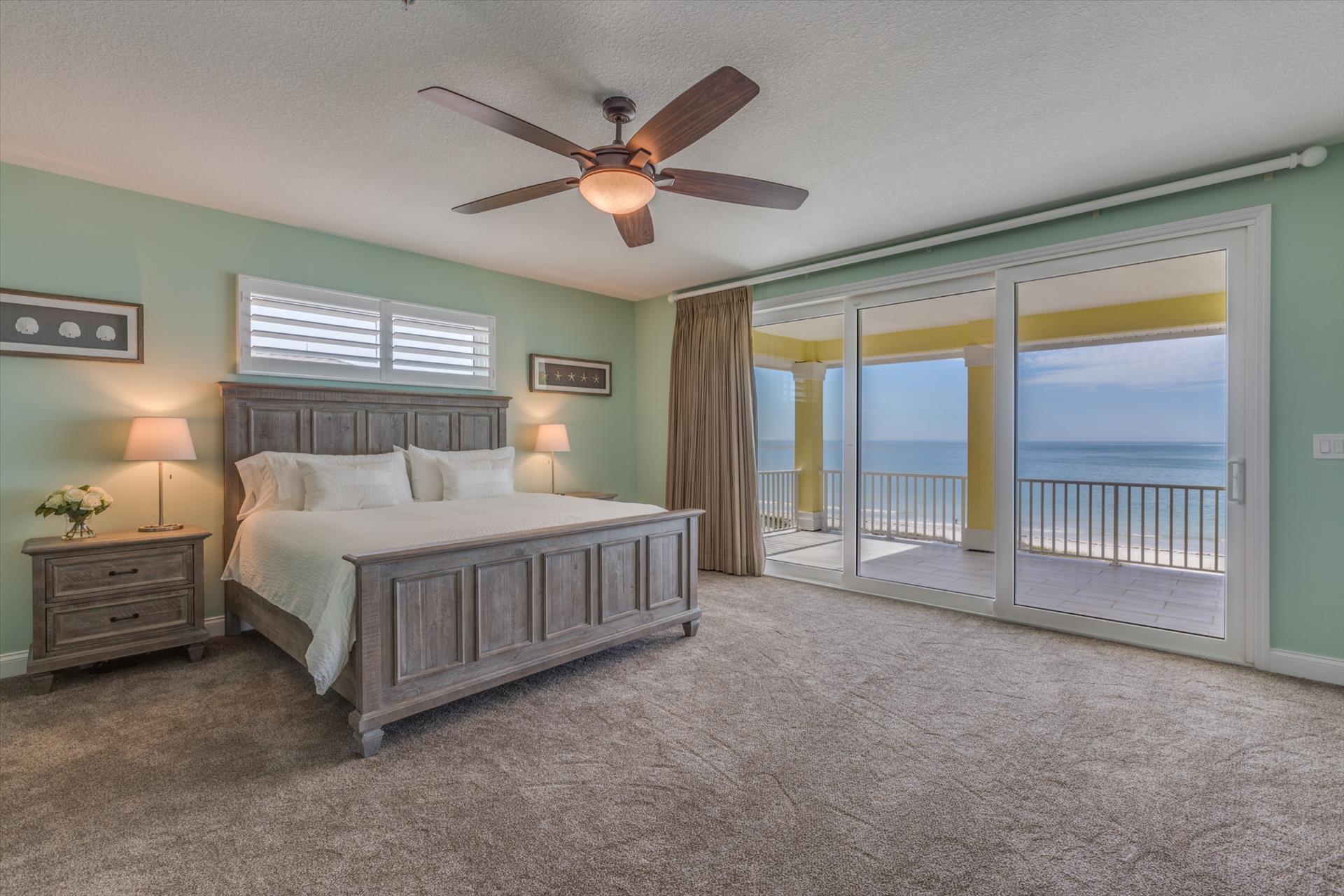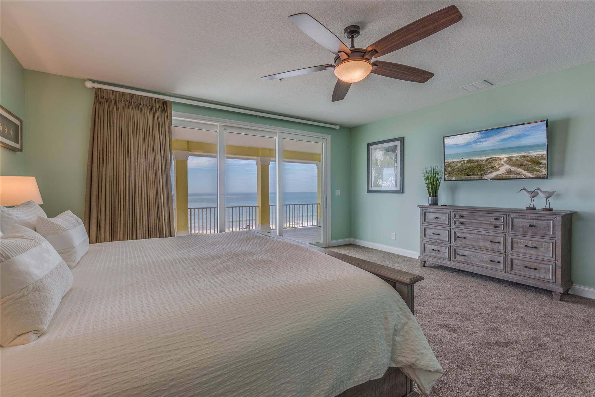 Bedroom 2 has a king bed and an en suite tub/shower combination. This bedroom and the master share a large balcony with incredible views of the beach and the Gulf of Mexico.