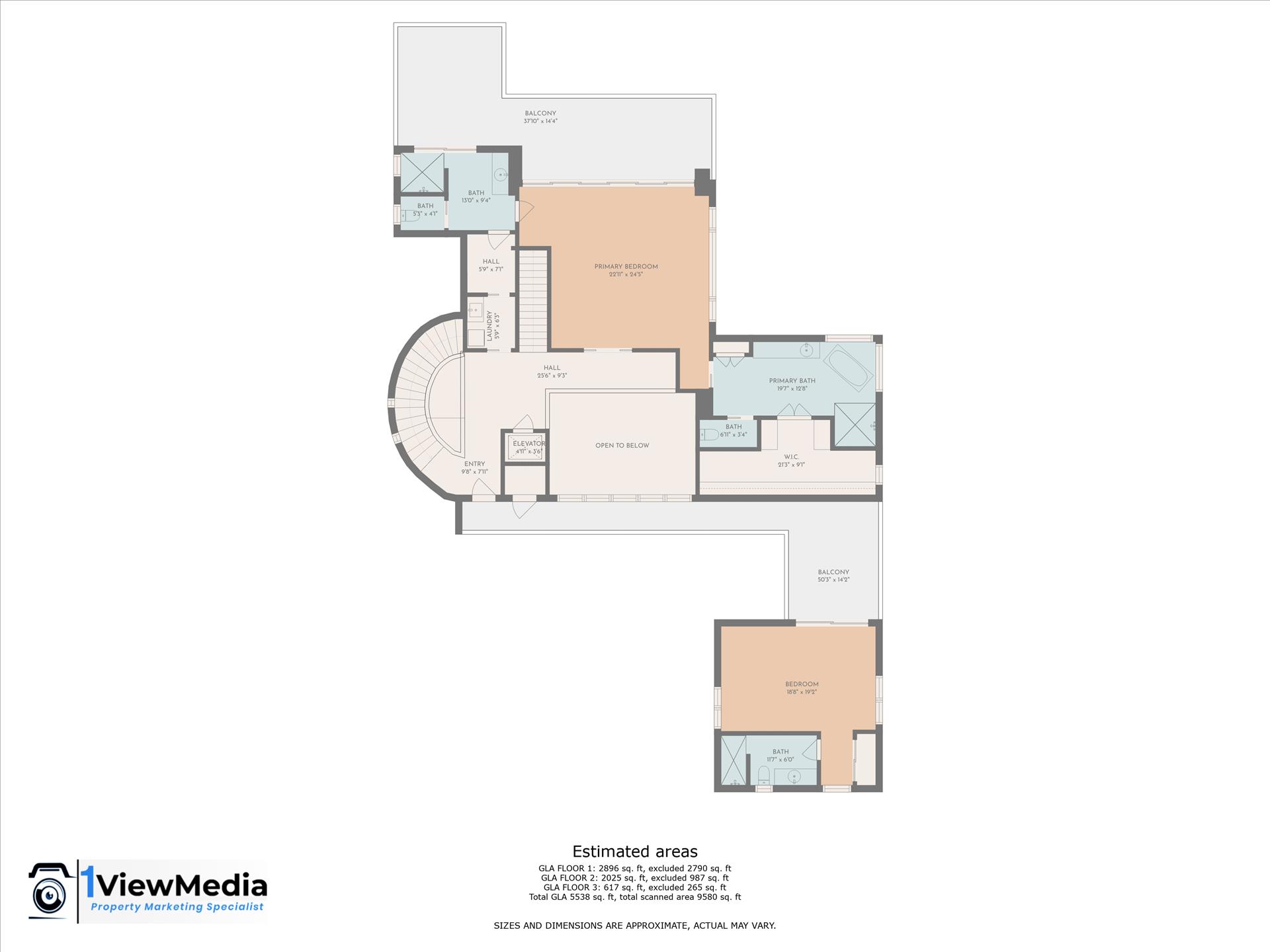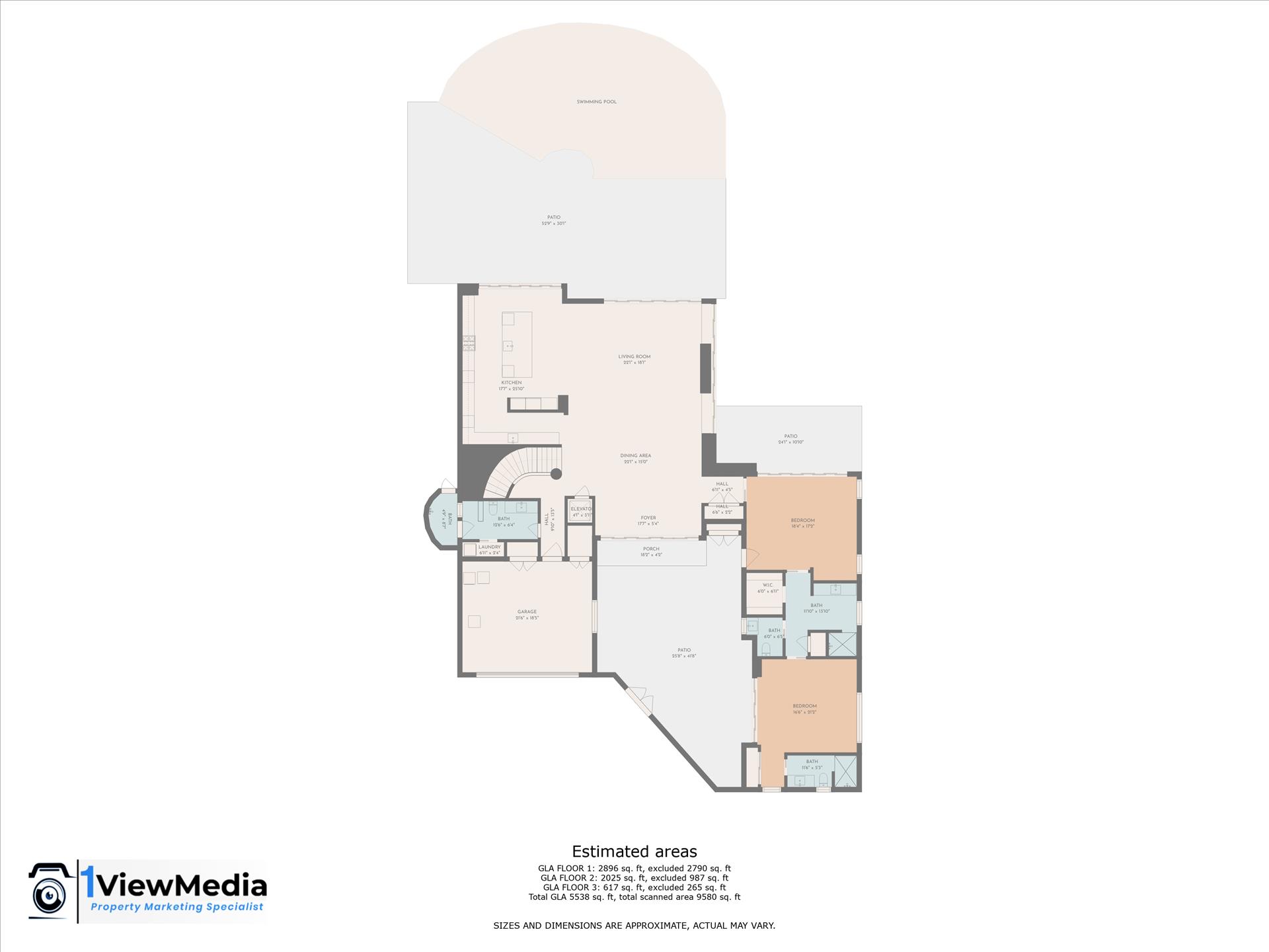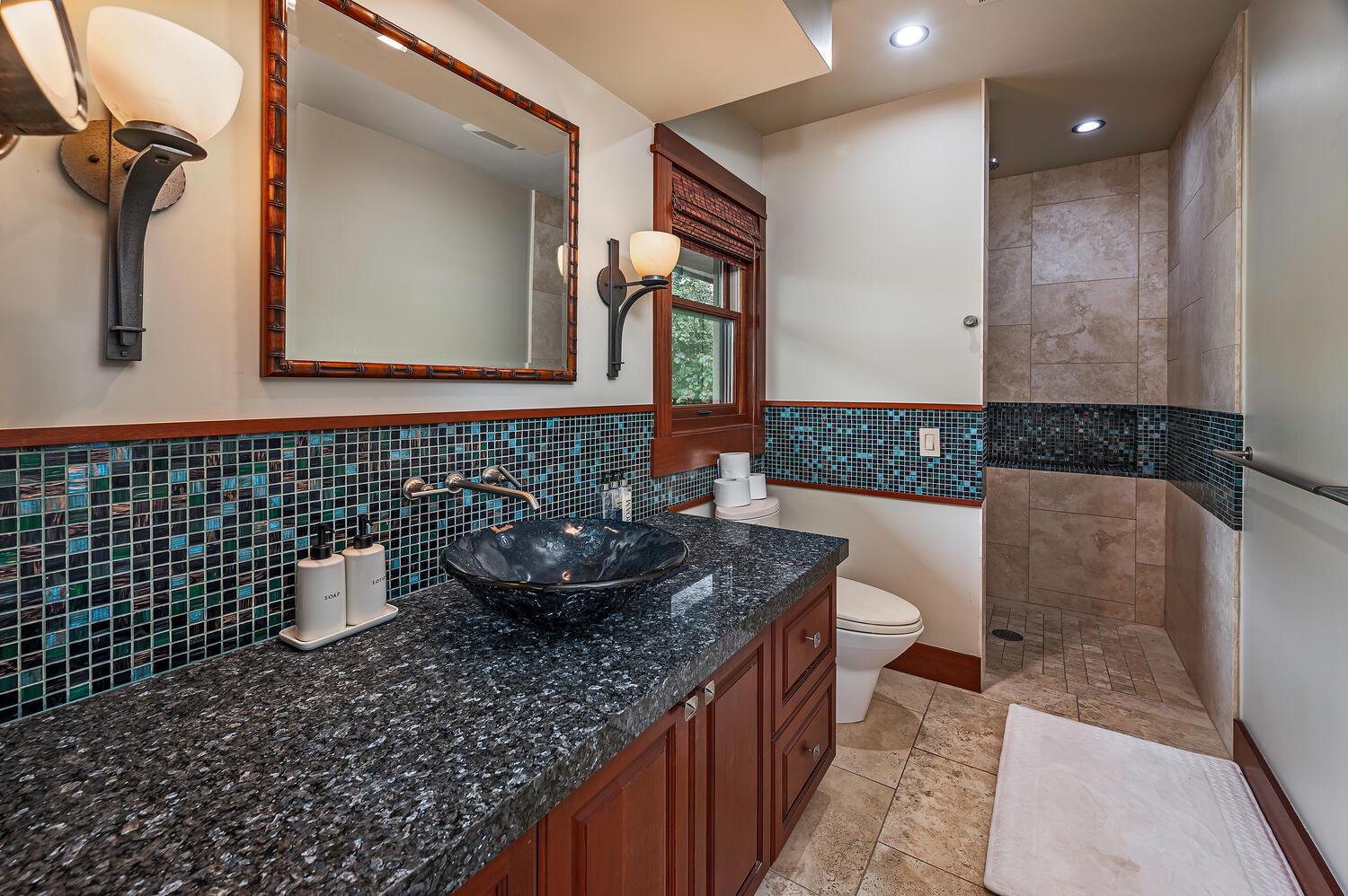 The home is comprised of 5 oversized sleeping accommodations with their own private bathrooms designed to offer plenty of opportunities for private time. There are a total of  5 Shower/Bathrooms (one also includes a free standing tub) and 2 additional powder rooms.