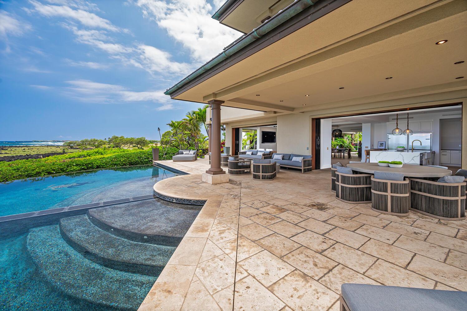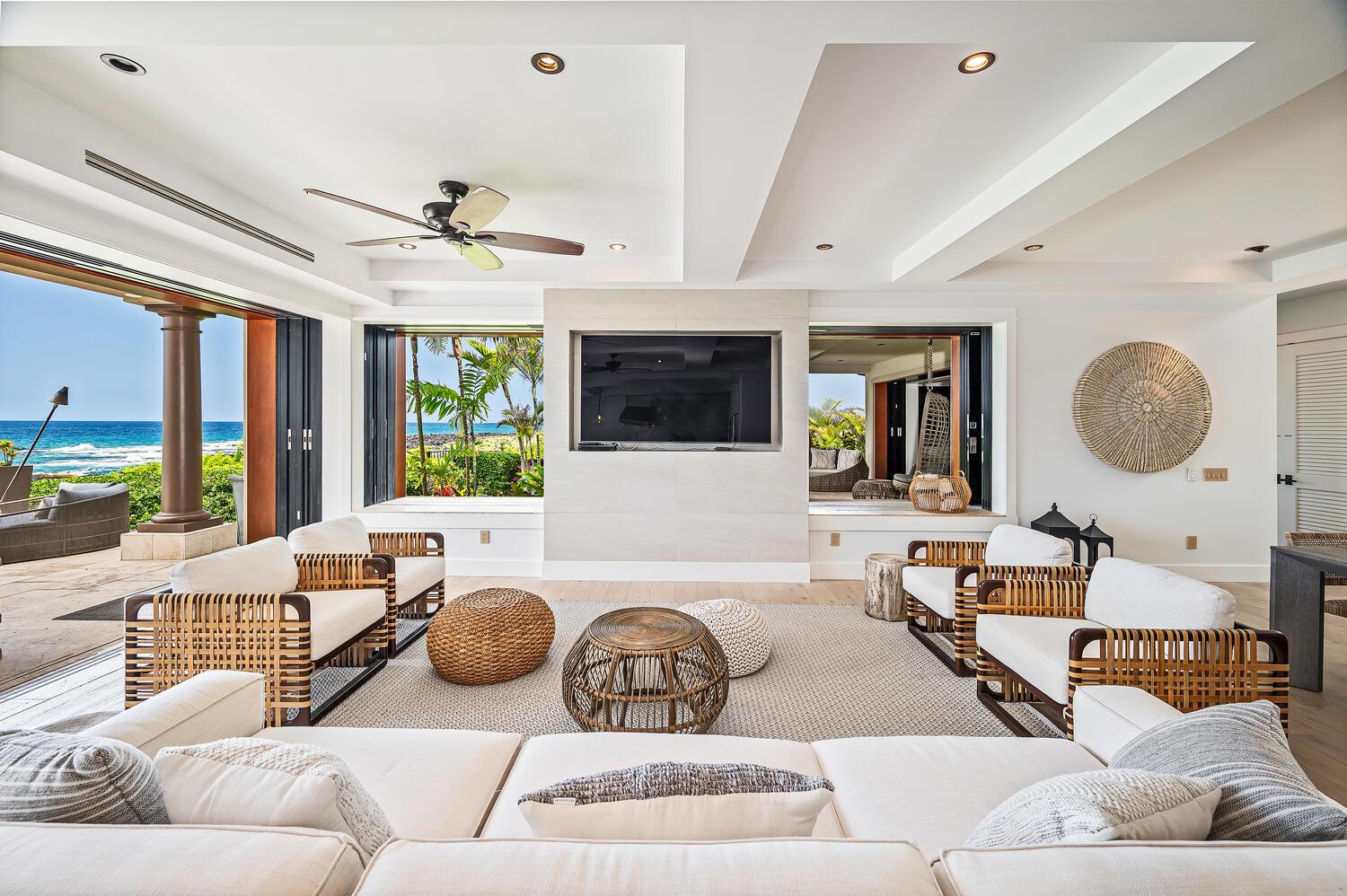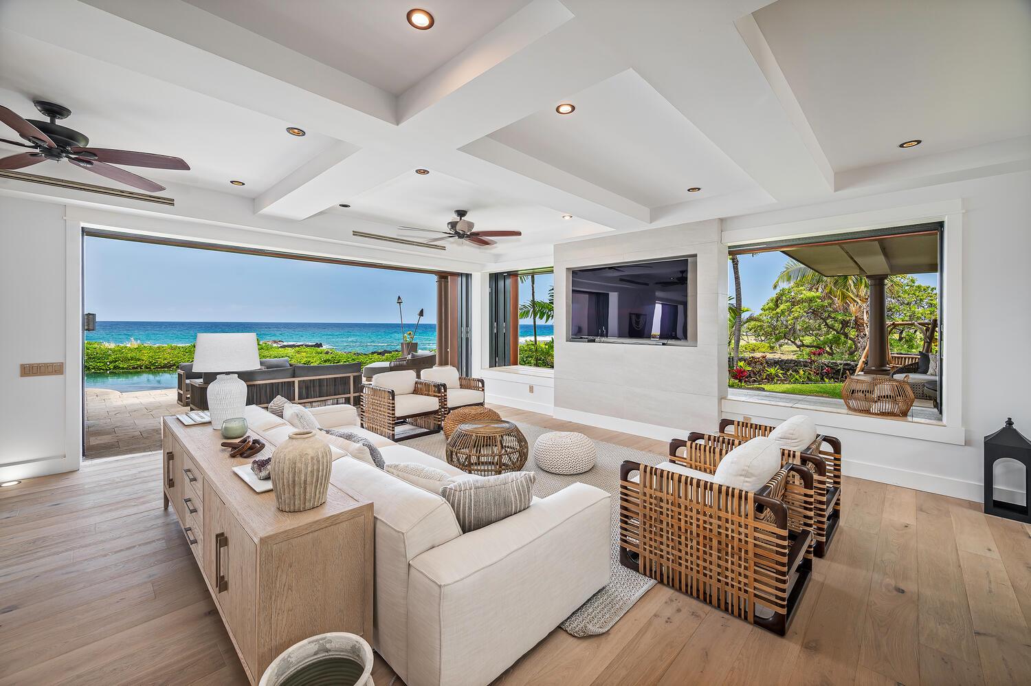 This Luxury Oceanfront Estate is the most northern home in this gated community offering the only completely unobstructed northern coastline view. All coastline in Hawaii is given respect as sacred ground, but the area directly in front of this home is considered to be one of the most revered. Kama'aina (children of the land) honor their ancestors at this location. Christenings, Proposals, and Wedding Ceremonies take place on the shoreline adjacent to the home. This spot is also considered one of the best shore diving locations in the world.
