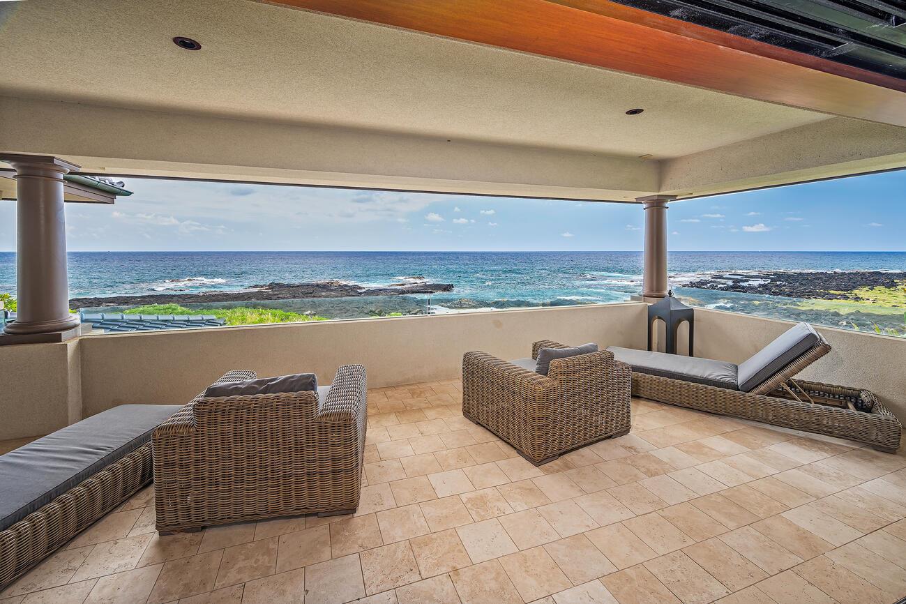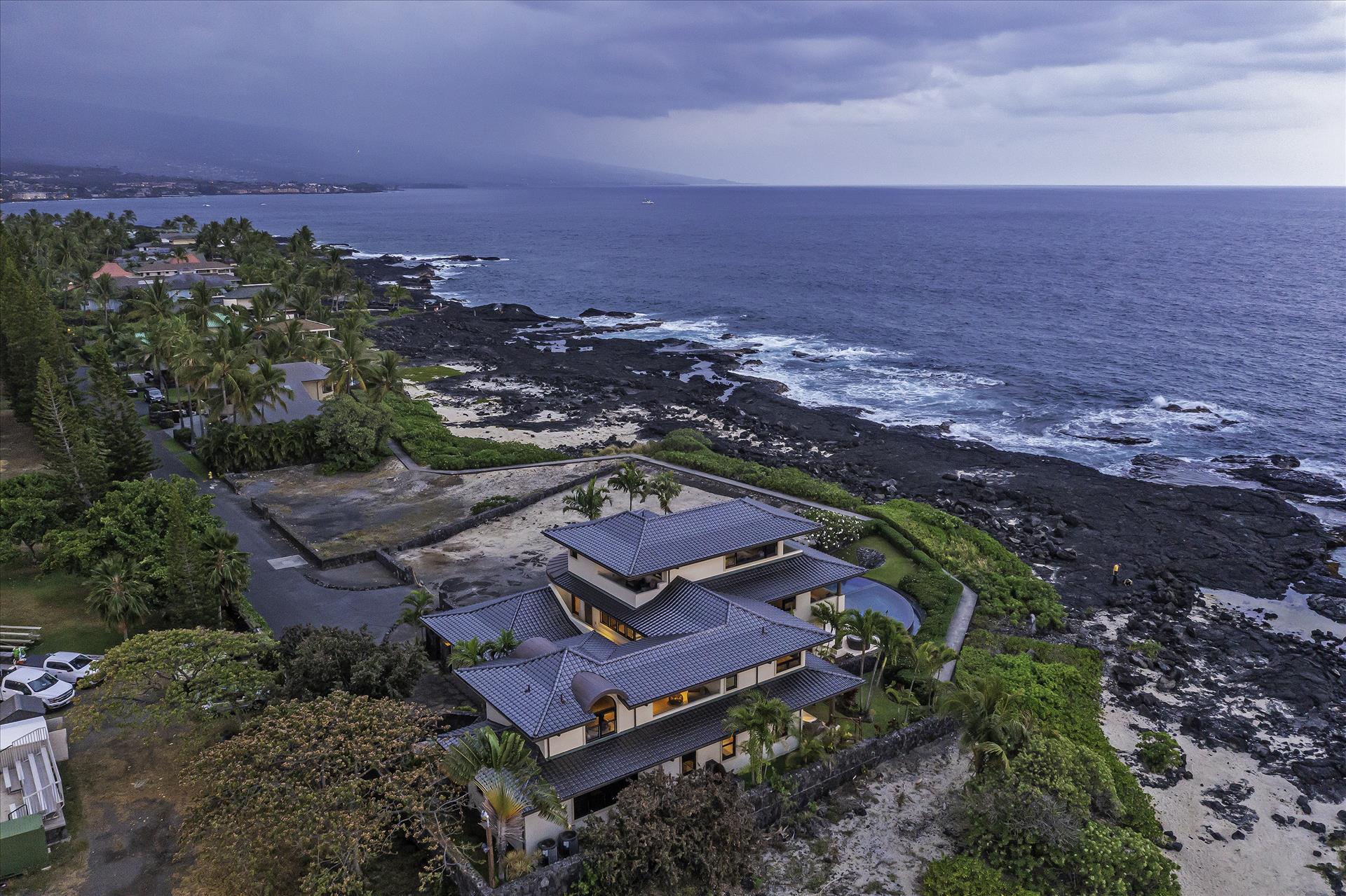 Transcend paradise with our absolute oceanfront 3 story 5 bedroom home located only blocks to Kailua-Kona town and within a guarded gate community of luxury estates. Your private oceanfront setting overlooks rich lava, white sands, crashing waves and Hawaii's famous romantic sunsets.